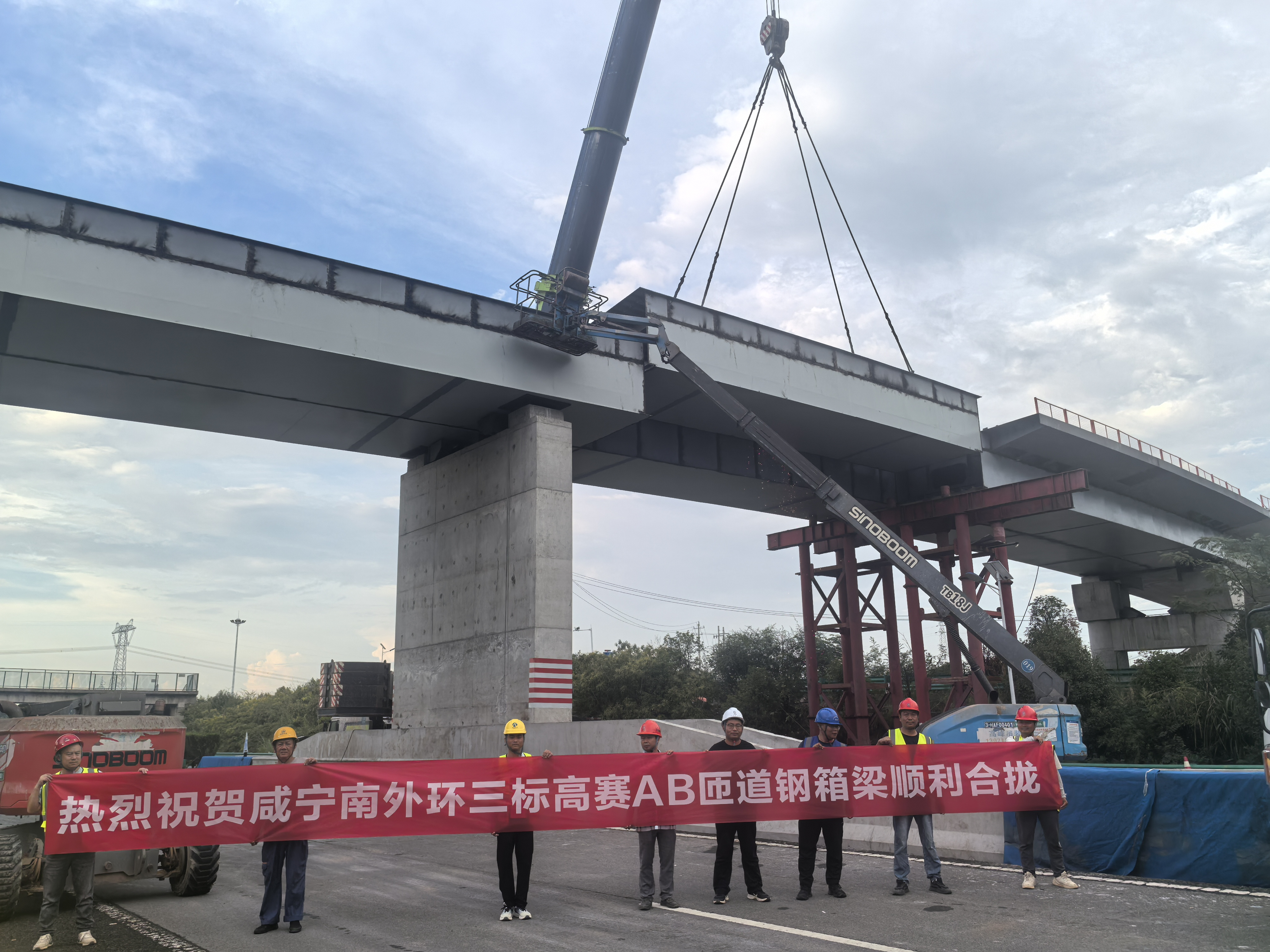 9月11日,隨著最后一節(jié)鋼箱梁精準(zhǔn)就位,由興達公司承建的咸寧南外環(huán)高賽樞紐互通A、B匝道橋鋼箱梁架設(shè)圓滿完成。